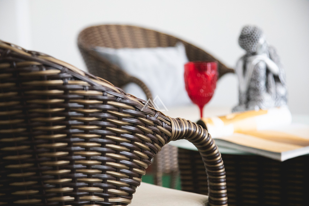 Las sillas mas comodas de nuestra linea , definitivamnete este juego de terraza es ideal en cualquier balcon o terraza , su mesa es de diseño tradicional con tapa en vidrio se usa para los balcones de habitaciones principales donde los desayunos o tardes para leer seran de total comodidad . compuesto por su estructura en aluminio y tejido en resina sintetica trenzada. sus comodos cojines en telas de exterior .